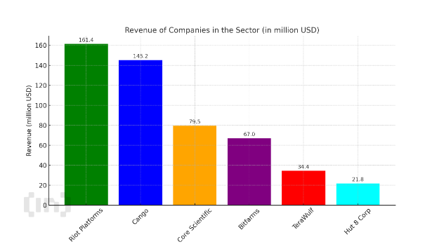 “Riot Platforms” kompaniyasi eng yuqori daromadni qayd etdi – 161,4 million dollar. Asosiy daromad Bitkoin mayningidan kelib chiqdi (142,9 million dollar), va 1,530 BTC ishlab chiqarildi. Biroq, bir birlik mayning xarajatlari yil davomida 23,034 dollardan 43,808 dollarga oshdi, bu yarimlashish va tarmoq qiyinchiligining ta’sirini aks ettiradi.