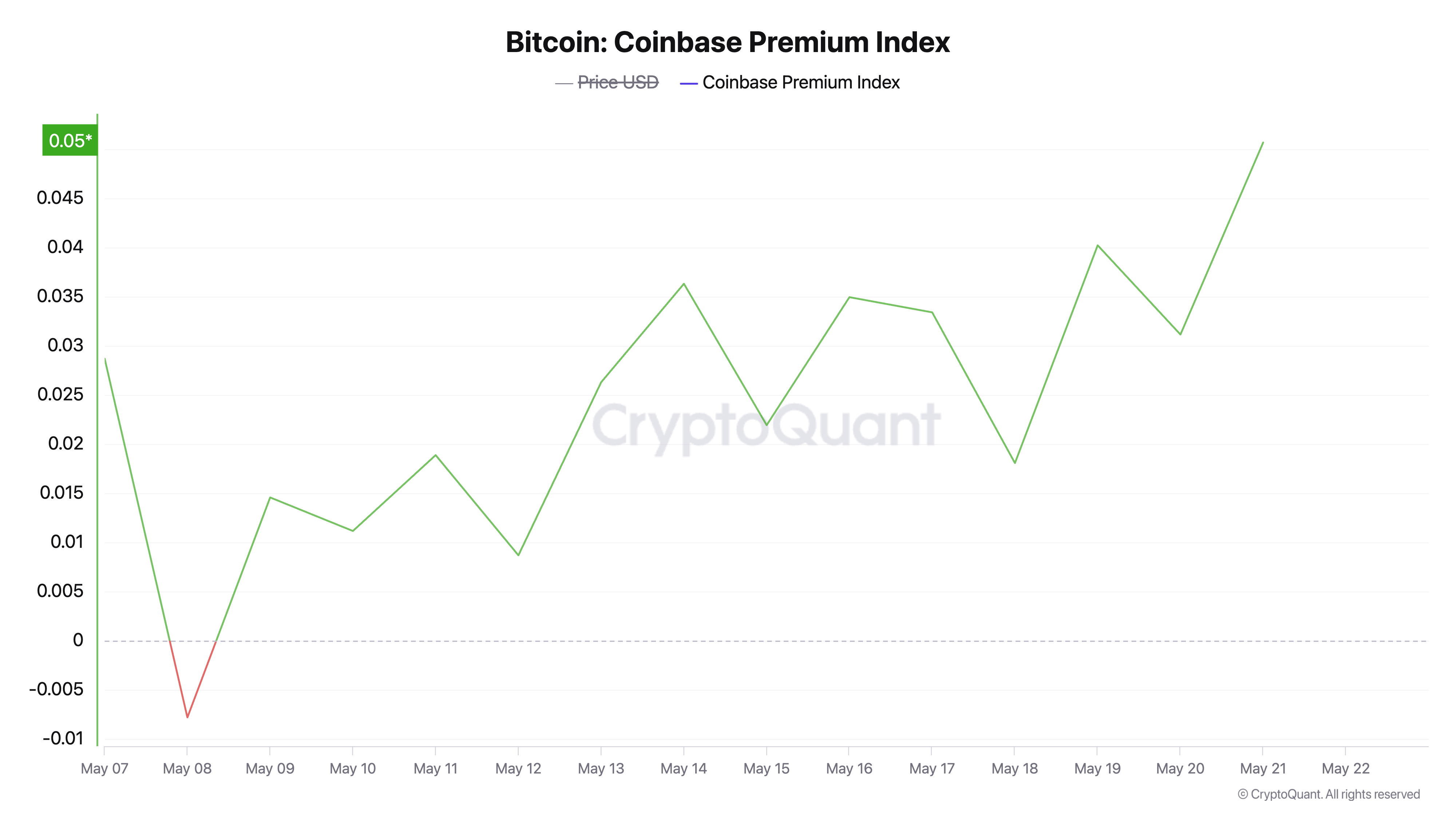 Bitcoin Coinbase Premium Index. Manba: CryptoQuant