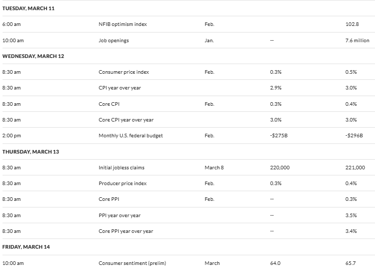 “JOLTS, CPI va PPI bilan iqtisodiy ma’lumotlar uchun katta hafta. Biz so’nggi bir necha haftadagi yo’qotishlarning bir qismini qaytarib olish uchun ba’zi kuchlarni ko’rishimiz yoki asosiy muammolar borligini tasdiqlashimiz va bozorlar sotishni davom ettirishimiz mumkin,” bozor tahlilchisi Mark Kullen bildirdi.