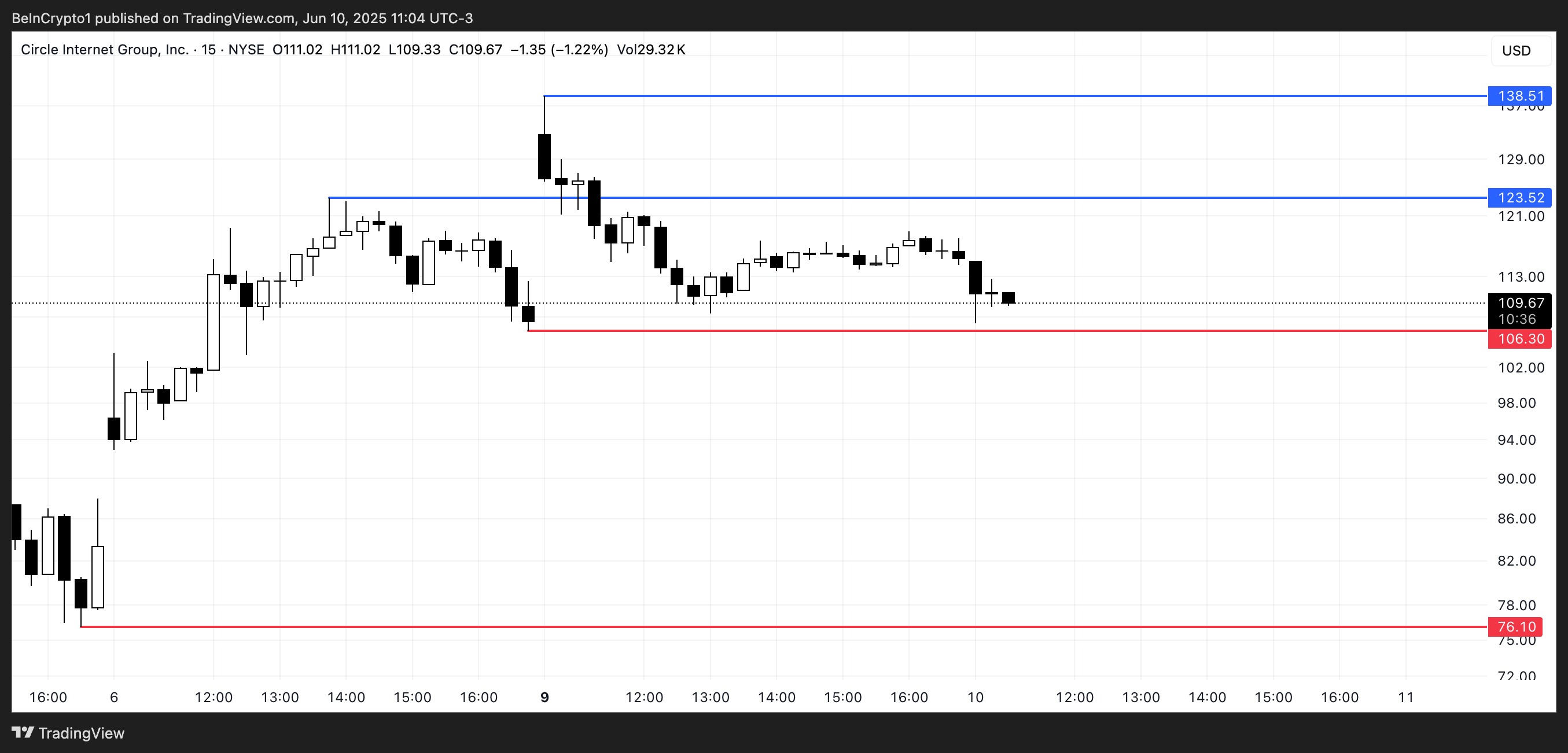 CRCLning yaqin kelajakdagi narx yo’nalishi uchun muhim qo’llab-quvvatlash darajasi $106 da joylashgan; agar bu daraja buzilsa, aksiya $76 gacha pasayishi mumkin.