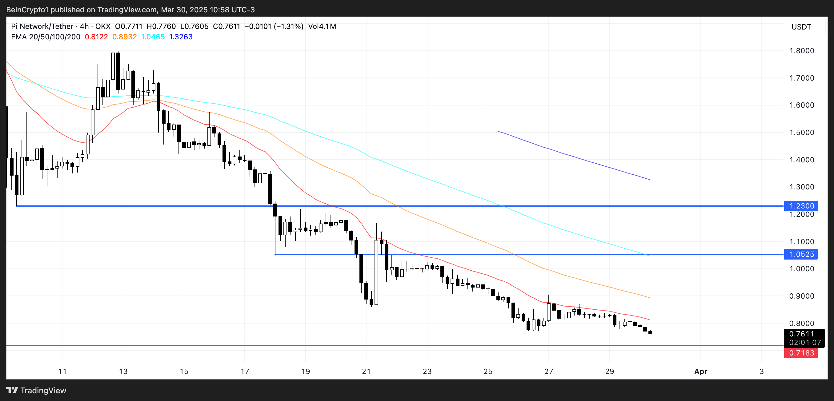 Agar kayfiyat o’zgarsa, PI $1.05 da qarshilikka qaytishi mumkin. U yerdan chiqish $1.23 ga ko’tarilishiga olib kelishi mumkin.