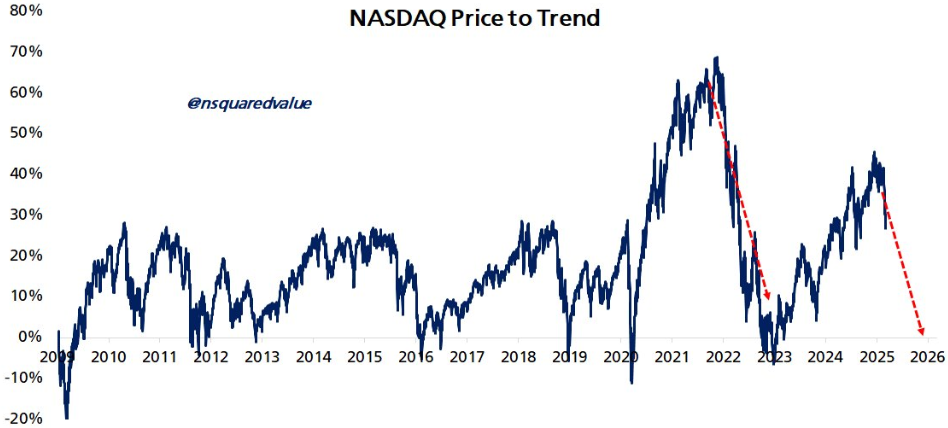 NASDAQ hozirda 28% ortiqcha baholanganligini hisobga olib, u taxminan 17% pasayishni kutmoqda, bu indeksni 15,000 ga tushiradi.