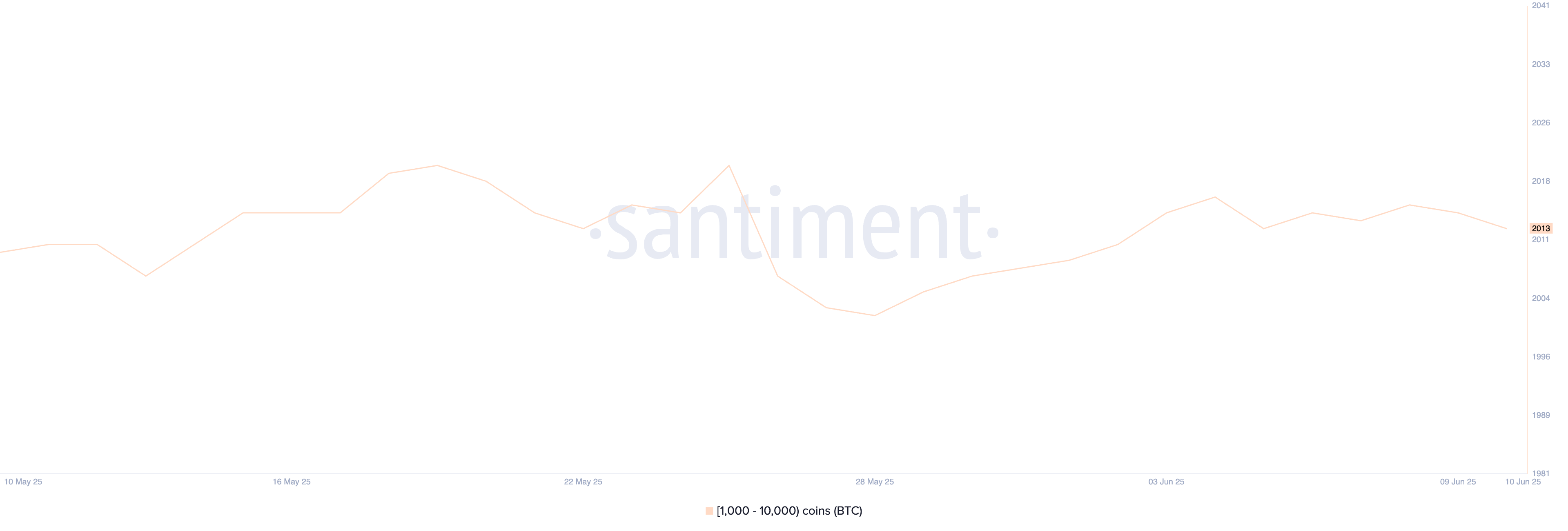 28-maydan 4-iyungacha, 1,000 dan 10,000 «Bitkoin» saqlovchi «Bitkoin» kitlarining soni 2,002 dan 2,017 gacha oshdi.
