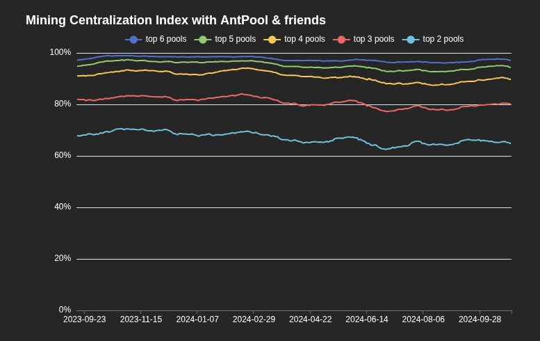 Ba’zi hamjamiyat a’zolari ham ochiqchasiga Bitkoin mayningi “juda markazlashgan” bo’lib qolganini tan olishdi. Evan Van Nessning statistik ma’lumotlariga ko’ra, uchta mayning havzasi ko’pincha global hashrateining 80% dan ortig’ini egallaydi.