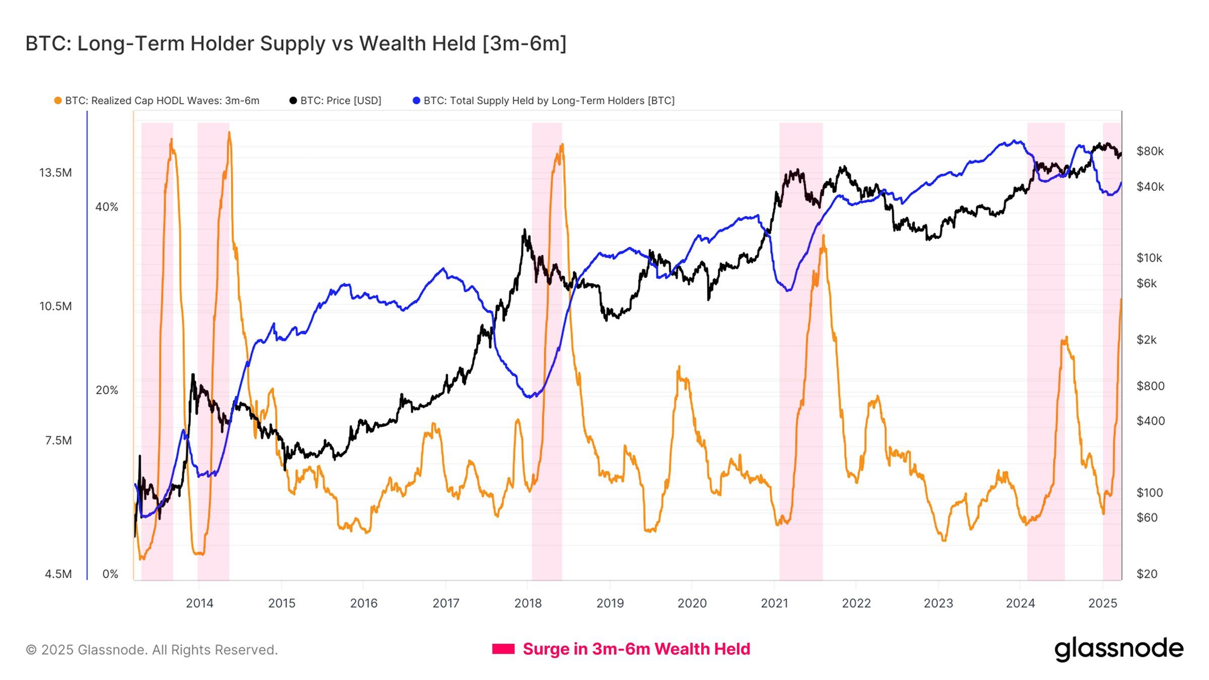 Qisqa muddatli ehtiyotkor kayfiyatga qarshi, o’rta muddatli egalari (3-6 oylik egalari) ushbu davrda boyliklarining oshishini ko’rishdi. Ushbu egalari uzoq muddatli egalarga (LTH) aylanishmoqda, bu esa investorlarning ishonchining o’zgarishini ko’rsatadi. Ushbu tangalarning ko’pi Bitcoinning eng yuqori darajalarida sotib olingan va ularning davomiy qarishi ushbu investorlar orasida kuchli ishonchni ko’rsatadi.