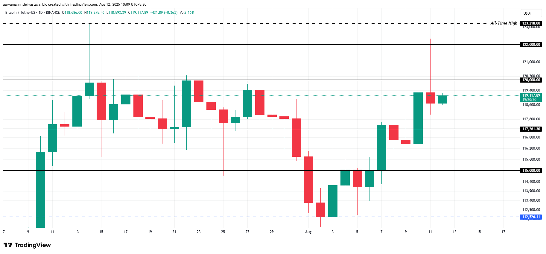Shunday qilib, agar CPI hisoboti prognoz qilingan 2.8% dan past bo’lsa va iyul oyidagi 2.7% yillik darajada saqlansa, Bitkoin $120,000 qarshilik darajasidan o’tishi mumkin. Ijobiy CPI hisoboti Bitkoinning $122,000 ga yetishiga va ehtimol tarixiy maksimum (ATH) $123,218 ga ko’tarilishiga yo’l ochishi mumkin.