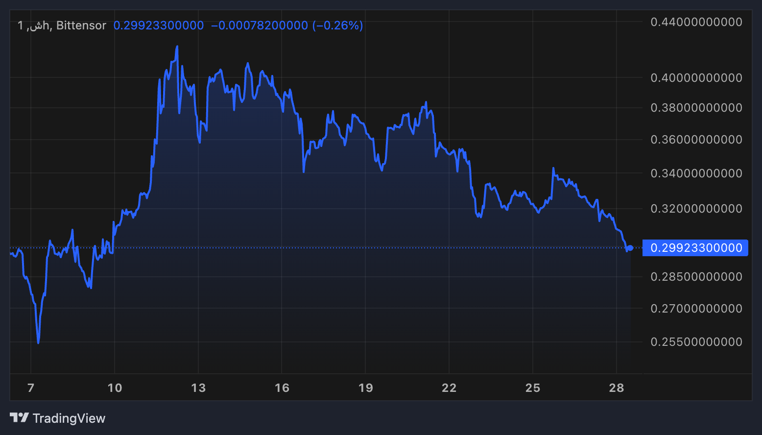 «Chutes» hozirda bozor qiymati bo’yicha eng katta «Bittensor Subnet tokeni» hisoblanadi, ammo so’nggi yetti kun ichida deyarli 18% ga tushib ketdi.