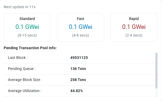 0.1 Gwei barqarormi? Bu tarmoq yukiga va validator kayfiyatiga bog’liq. BSC o’rtacha 20% quvvatdan foydalanishni tashkil etganda, tirbandlik xavfi past ko’rinadi. Shunday bo’lsa-da, jamoaning fikriga ko’ra, narxlash aniq emas, ammo organik mexanizmdir.