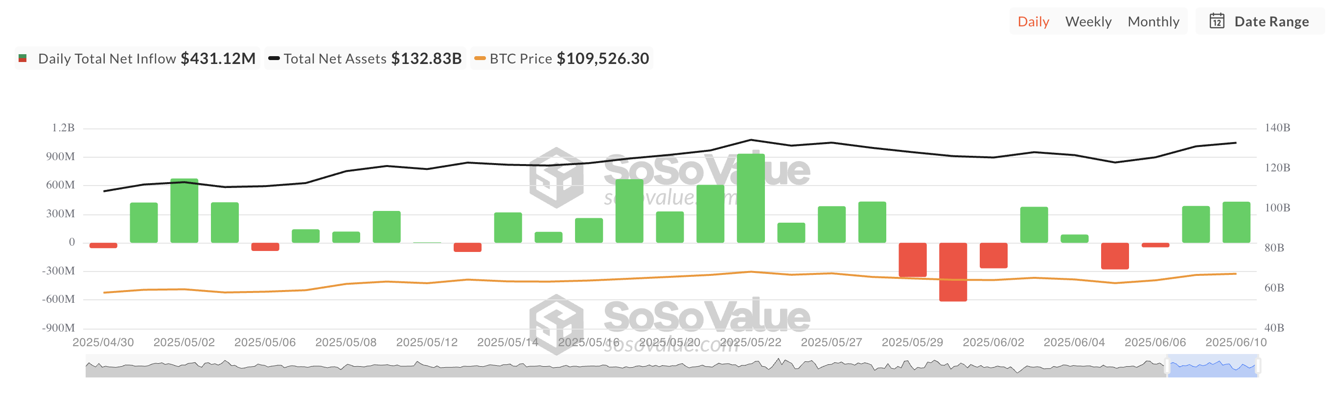 Kechagi kunda «BlackRock» kompaniyasining IBIT fondi eng katta kunlik kirimni qayd etdi. U 337 million dollarni tashkil etdi va uning umumiy tarixiy sof kirimi 49,11 milliard dollarga yetdi.