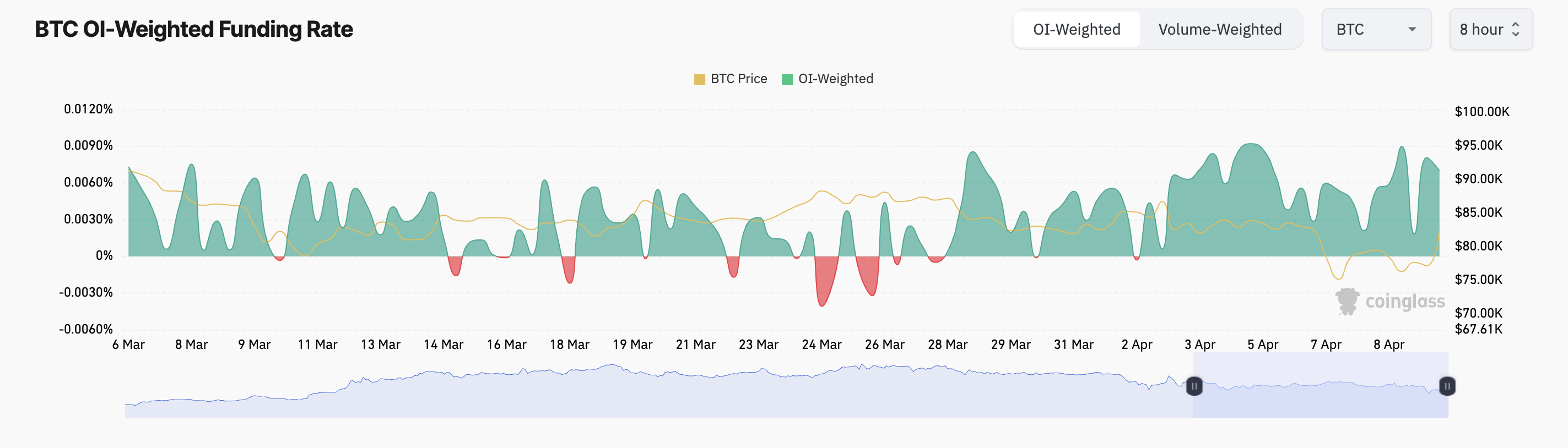 Bundan tashqari, BTC ning moliyalashtirish darajasi ijobiy bo’lib qolmoqda, hatto kengroq bozor kayfiyati pasaygan bo’lsa ham. Hozirgi vaqtda bu 0.0070% ni tashkil etadi.