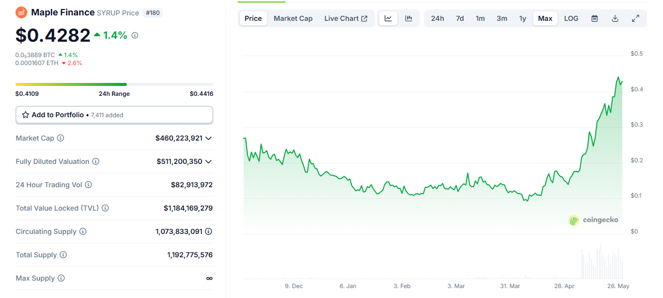«Maple Finance»ning yangi tokeni eng yaxshi ko’rsatkichga erishgan va noma’lum miqdordagi kreditning birinchi qismini yopgan.