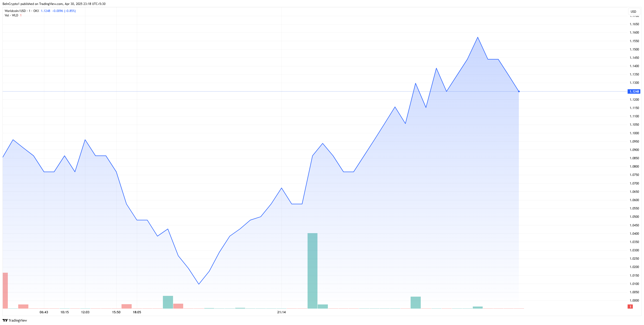 Coinbase ro’yxati yo’l xaritasi yangilanishidan so’ng, Worldcoin avvalgi pasayishdan tiklandi, chunki WLD o’tgan soatda 3% ga oshdi.