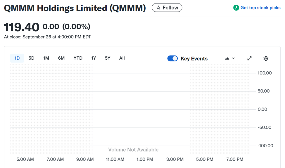 Ma’lumotlarga ko’ra, «QMMM» 2024 yilda har bir aksiya uchun 4 dollardan ommaviy savdoga chiqdi va 8,6 million dollar yig’di. Narx keyinchalik 303 dollarga ko’tarilib, 560 barobar oshdi, so’ngra 0,54 dollarga tushib ketdi.