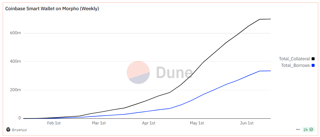 Yaqinda “Coinbase” kompaniyasining iste’molchilar mahsulotlari bo’yicha rahbari Maks Branzburg ma’lum qildiki, “Coinbase” foydalanuvchilari USDCda 400 million dollar qarz olishgan, foiz stavkasi taxminan 5% ni tashkil etadi. Bu mahsulot ishga tushirilganidan bir necha oy o’tgach sodir bo’ldi.
