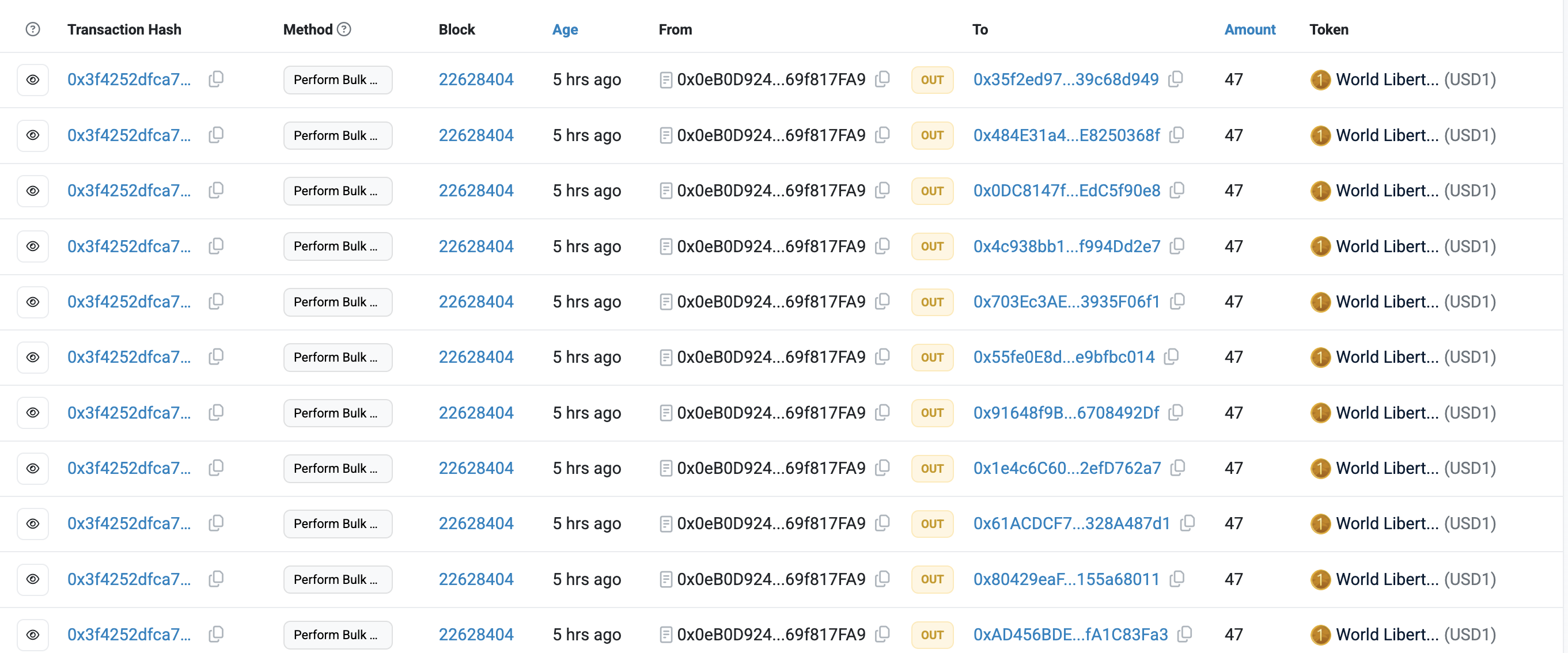 «World Liberty Financial» tashkilotining airdropi har bir WLFI egasiga 47 USD1 stablkoinlarini yubordi. Bu tarqatish loyihaning yaqinda qabul qilingan boshqaruv qarorlarini va shaffoflikka bo’lgan sadoqatini aks ettirdi. Etherscan ma’lumotlari o’tkazmalarni darhol tasdiqladi, bu esa jamoaga voqeani tahlil qilish va muhokama qilish imkonini berdi.