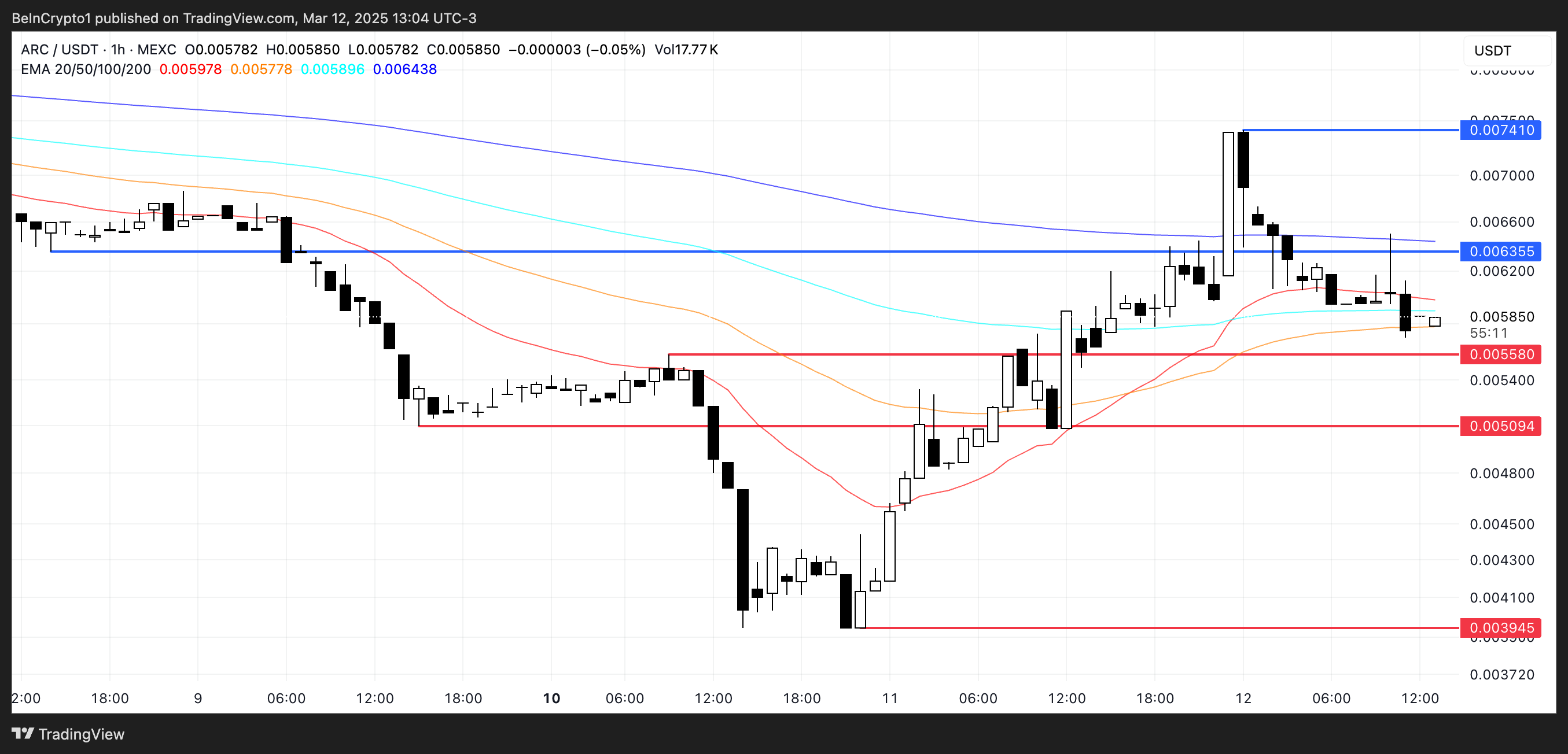 Agar ARC momentumni qayta tiklasa, u $0.0063 va $0.0074 ni sinab ko’rishi mumkin, bu esa hozirgi darajalardan sezilarli tiklanishni belgilaydi.