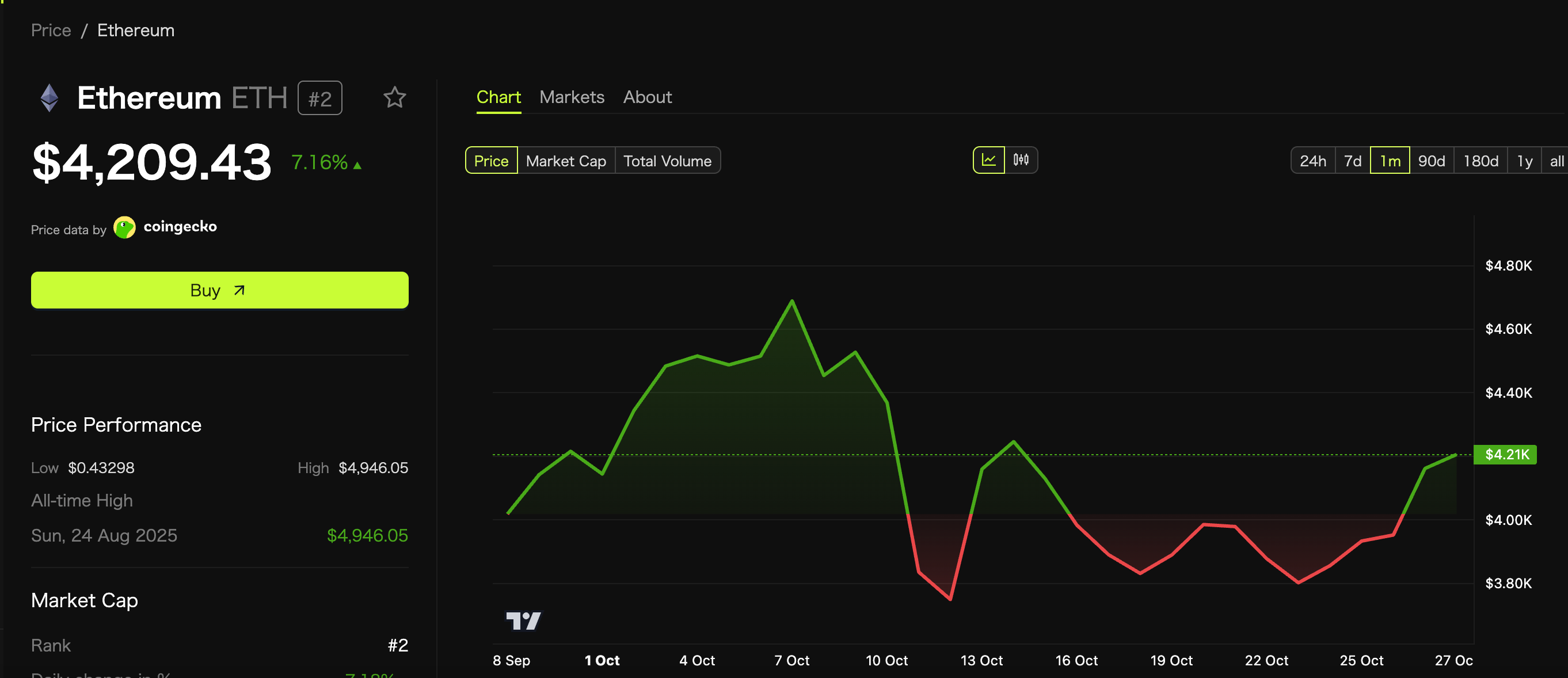 Dushanba kuni «Efirium» $4,200 dan oshib, muhim psixologik chegarani bosib o’tdi va o’rta muddatli buqa bosqichi haqida muhokamalarni qayta jonlantirdi.