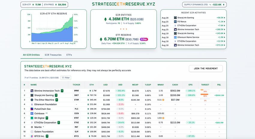 «BitMine» iyul oyidan beri 1,5 milliondan ortiq ETH to’pladi va 5,6 milliard dollardan ko’proq mablag’ sarfladi. «SharpLink» iyun oyidan beri taxminan 740,000 ETH qo’shdi.