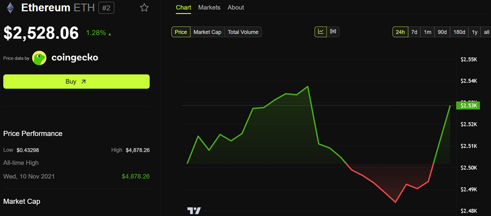 «BeInCrypto» ma’lumotlariga ko’ra, Efirium $2,528 narxda savdo qilinmoqda, bu so’nggi 24 soatda 1,28% ga oshgan.