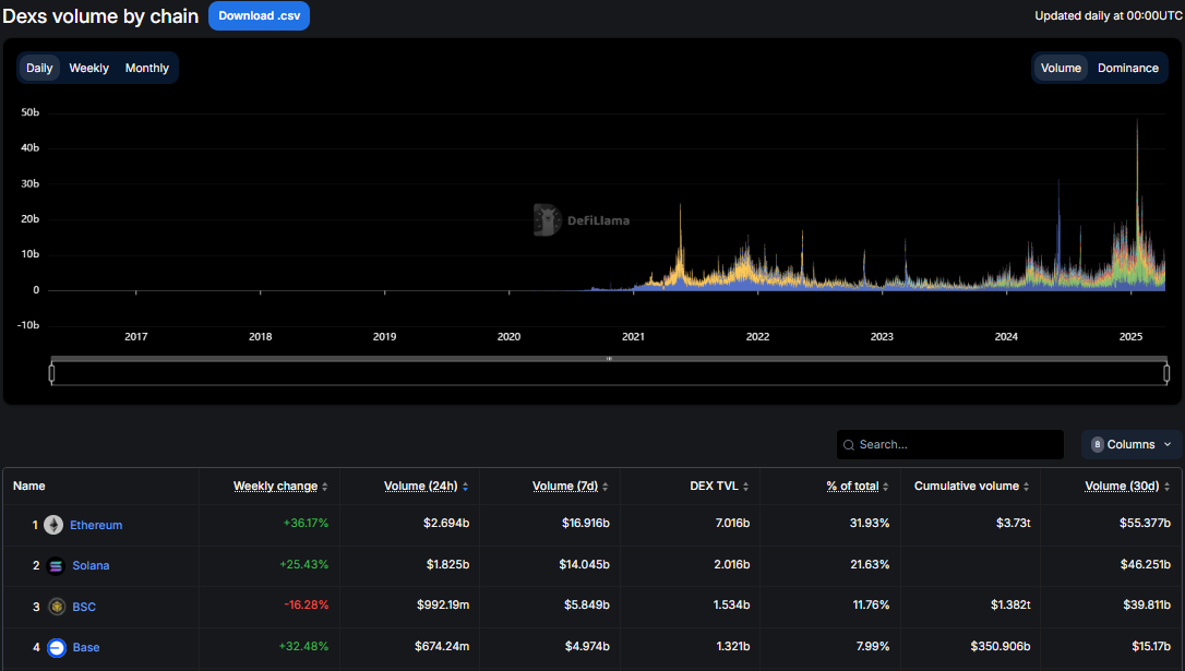 Biroq, hamma ham Ethereumning kunlari tugaganiga ishonmaydi. Bir hafta oldin, Ethereum Solanani decentralized exchange (DEX) savdo hajmi bo’yicha ortda qoldirdi.