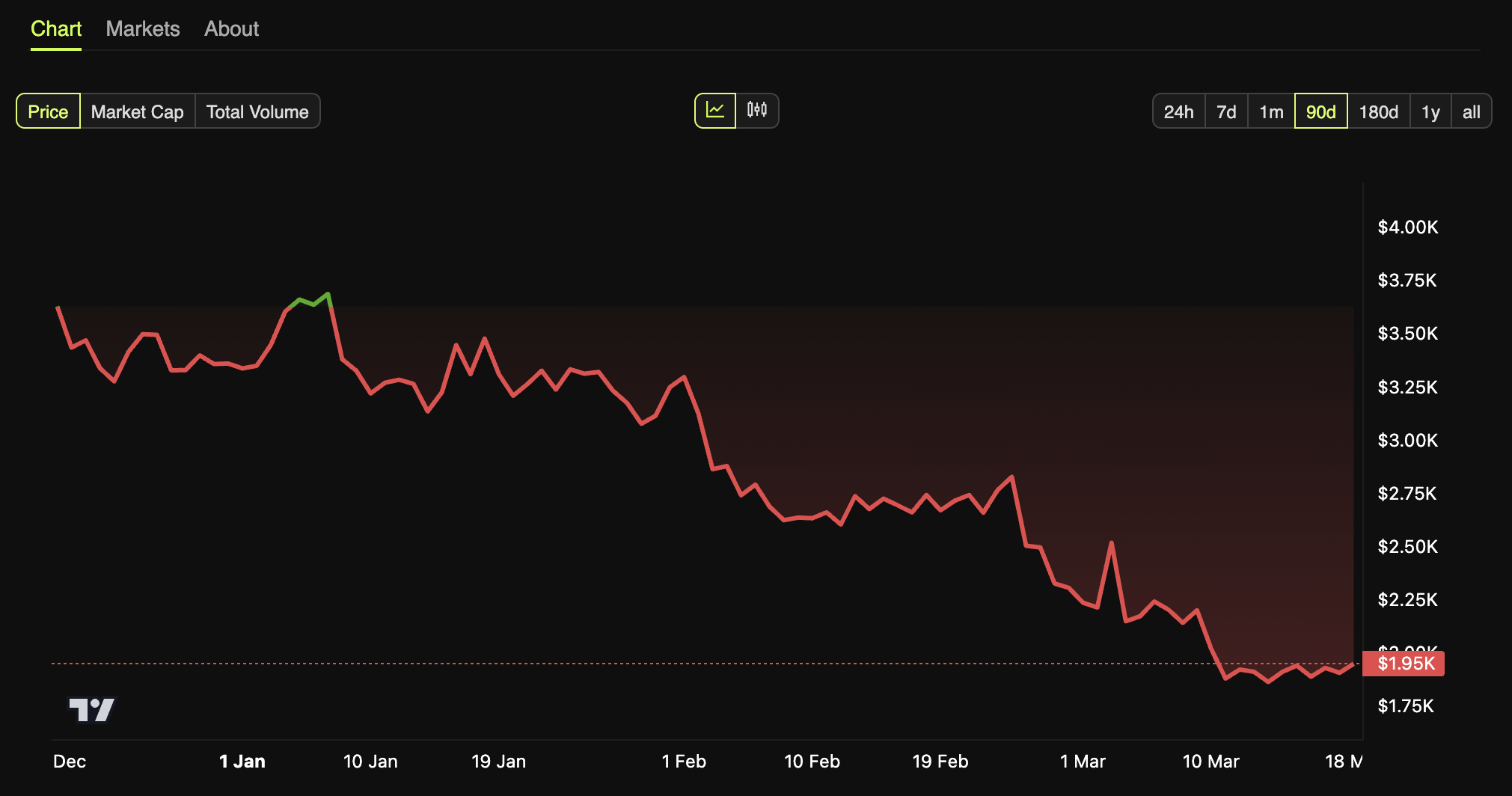 Bu nuqtai nazar ETH uchun qiyin bozor sharoitlari fonida kelmoqda. 2024 yil oxiridan beri ETH doimiy pasayish tendensiyasida. Aslida, altkoin o’tgan oyda o’z qiymatining 29,4% ni yo’qotdi.