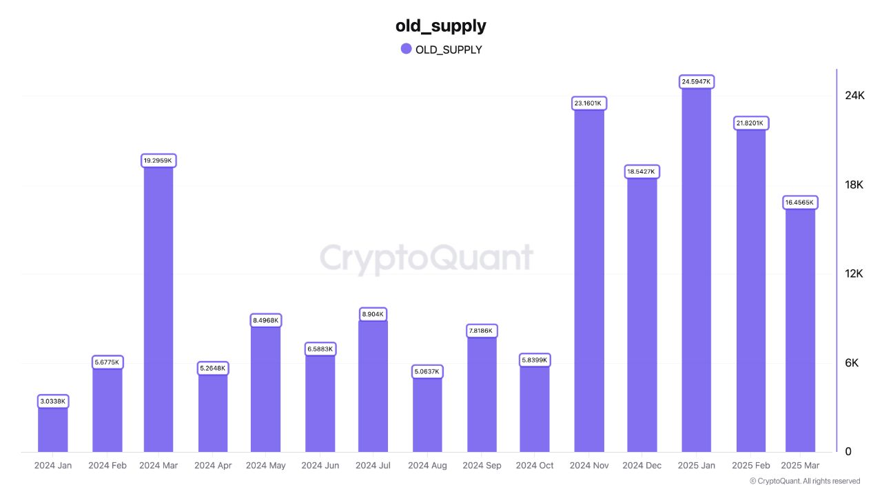 2025 yilning birinchi choragi bilan solishtirganda, ko’chirilgan Bitkoin miqdori sezilarli darajada yuqori edi. 62,000 dan ortiq BTC, yetti yildan ortiq vaqt davomida harakatsiz bo’lgan, ko’chirildi. Xususan, yanvar oyida 24,595 BTC, fevral oyida 21,820 BTC va mart oyida 16,456 BTC ko’chirildi.