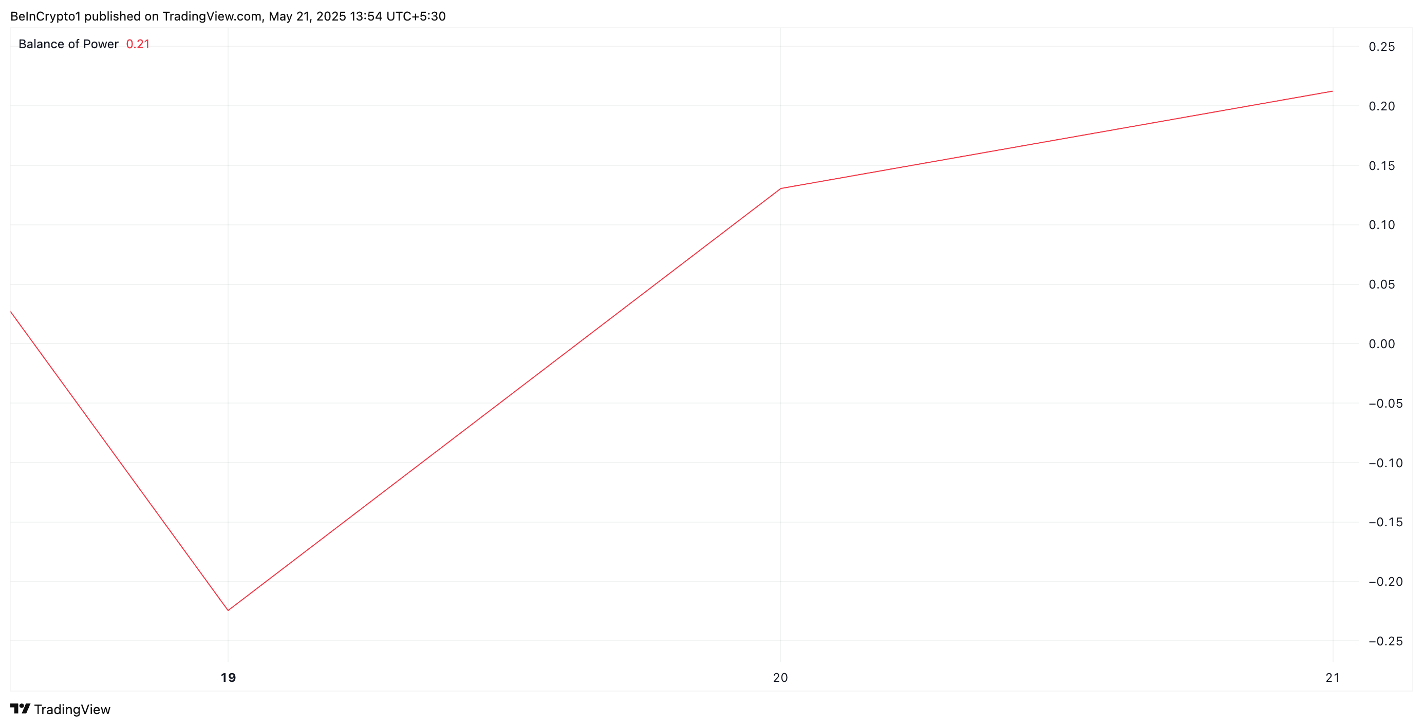 HBAR tiklanishning dastlabki belgilari ko’rsatilmoqda, chunki texnik ko’rsatkichlar investorlarning xarid faoliyatini oshirayotganini ko’rsatmoqda. Masalan, so’nggi sessiyalarda altkoinning Xarid va Sotuv kuchi (BoP) xaridorlar va sotuvchilar o’rtasidagi kuchni o’lchaydi va bu buqalarning foydasiga o’zgargan. Hozirgi vaqtda HBARning BoP ko’rsatkichi ijobiy va 0.21 darajasida o’sishda.