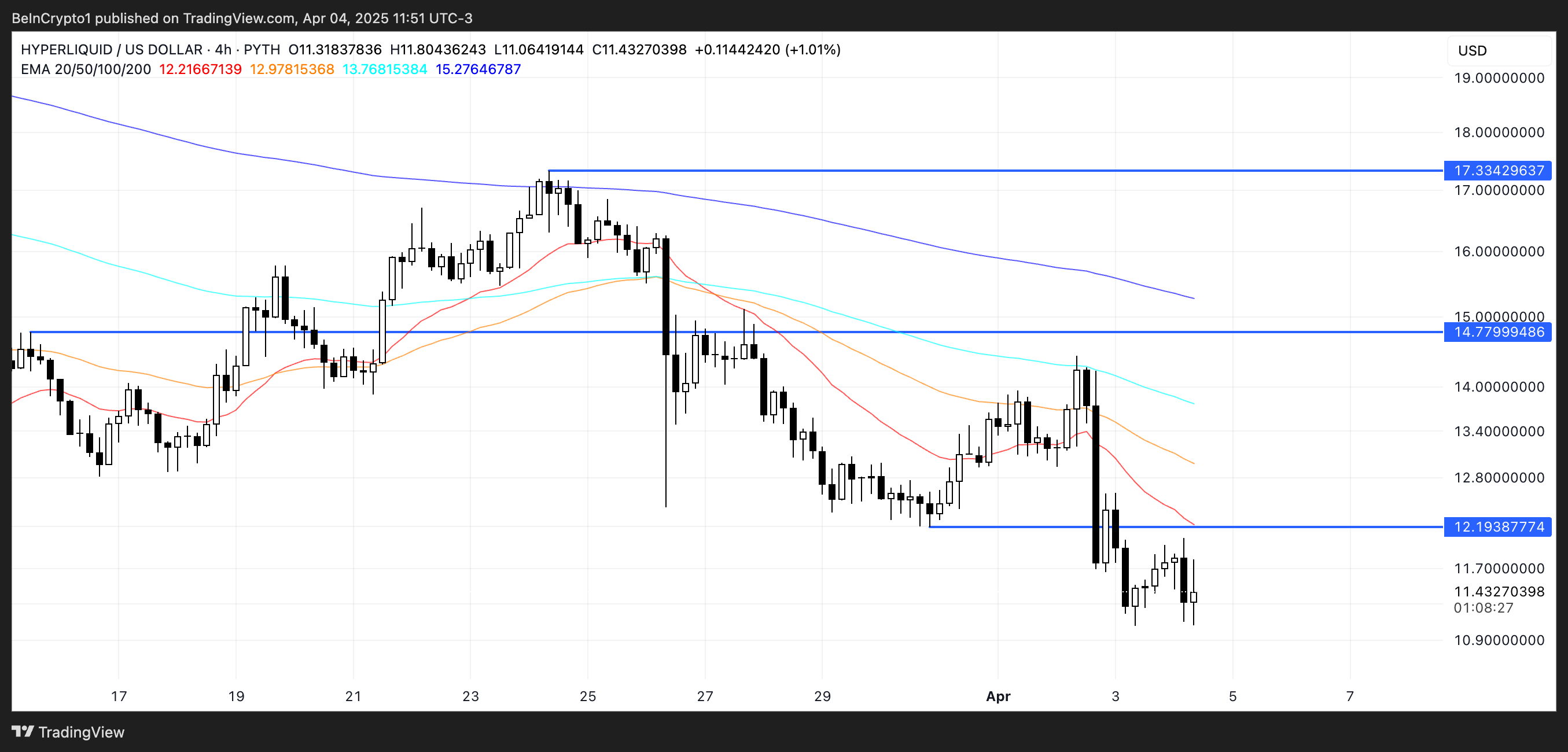 Agar hozirgi pasayish tendensiyasi davom etsa, HYPE tez orada $11 belgidan pastga tushishi mumkin.