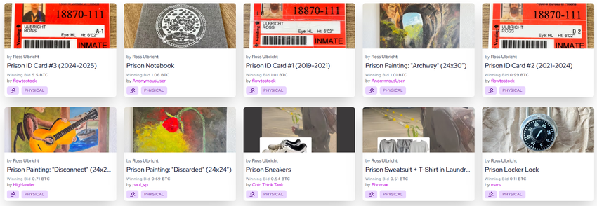 Sotuvga qo’yilgan buyumlar orasida qamoqdan berilgan ID kartalari, kiyim-kechak, rasmlar va qo’lda yozilgan eslatmalar bor edi. Uning 2024–2025 yillardagi qamoq ID kartasi 5.5 BTCga sotildi. Uchta ID kartaning to’liq to’plami esa 7.5 BTCga sotilib, o’sha paytda 780,000 dollardan ortiq qiymatga ega edi.