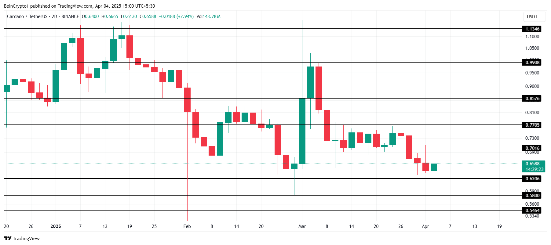 Agar Cardano (ADA) $0.70 darajasidan o’tib ketsa, bu ayiqcha kayfiyatning tugashini anglatishi mumkin.