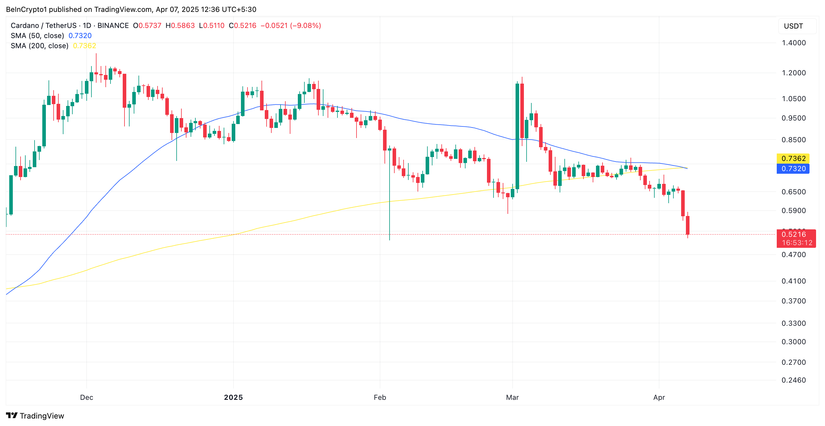 Cardano’ning Pasayish Trendi Chuqurlashmoqda: “O’lim Xochi” Yana Ko’proq Pasayishni Tahdid Qilmoqda