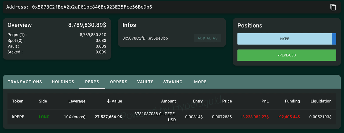 Pozitsiyaning nozik tabiati PEPE bozorining barqarorligiga kengroq xavflarni va Hyperliquidda kaldıraçli savdo uchun oqibatlarni keltirib chiqaradi.