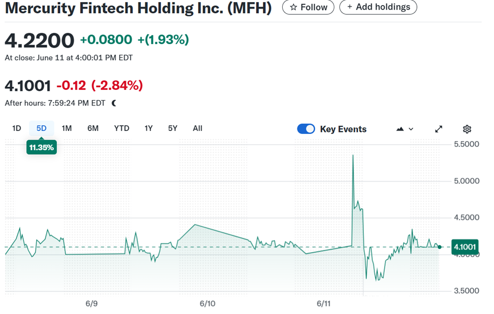 «AQShda ro’yxatga olingan Mercurity Fintech Holding Inc.» kompaniyasi yaqinda 800 million dollar yig’ish rejasini e’lon qildi. Bu mablag’lar uzoq muddatli Bitkoin xazina zaxirasini yaratish uchun ishlatiladi.