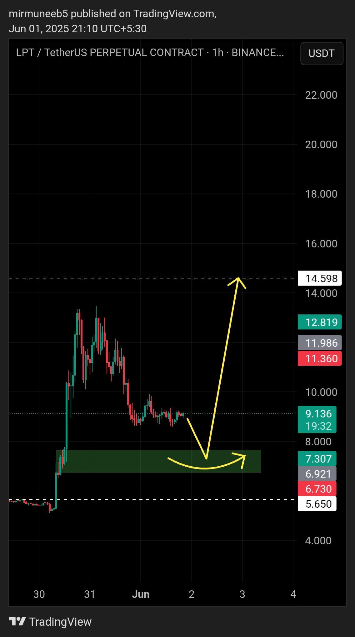 “LPT bu ko’zlar, har yili 14.5 $ ochilishi uchun potentsial sakrash uchun yashil zonani ushlab turishi kerak”, deb bashorat qildi kripto tahlilchisi Muneeb.