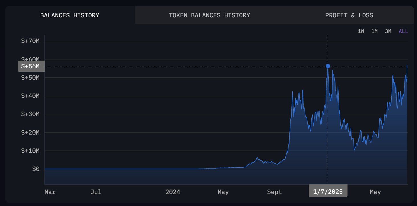 «Muradning portfeli yangi tarixiy maksimumga yetdi va 56,9 million dollarga yetdi. Yarim yil o’tgach, Murad yanvar oyida o’rnatgan avvalgi portfel tarixiy maksimumini yangiladi. U 8 oydan beri birorta tokenni harakatlantirmagan», deb «Arkham» xabar berdi.