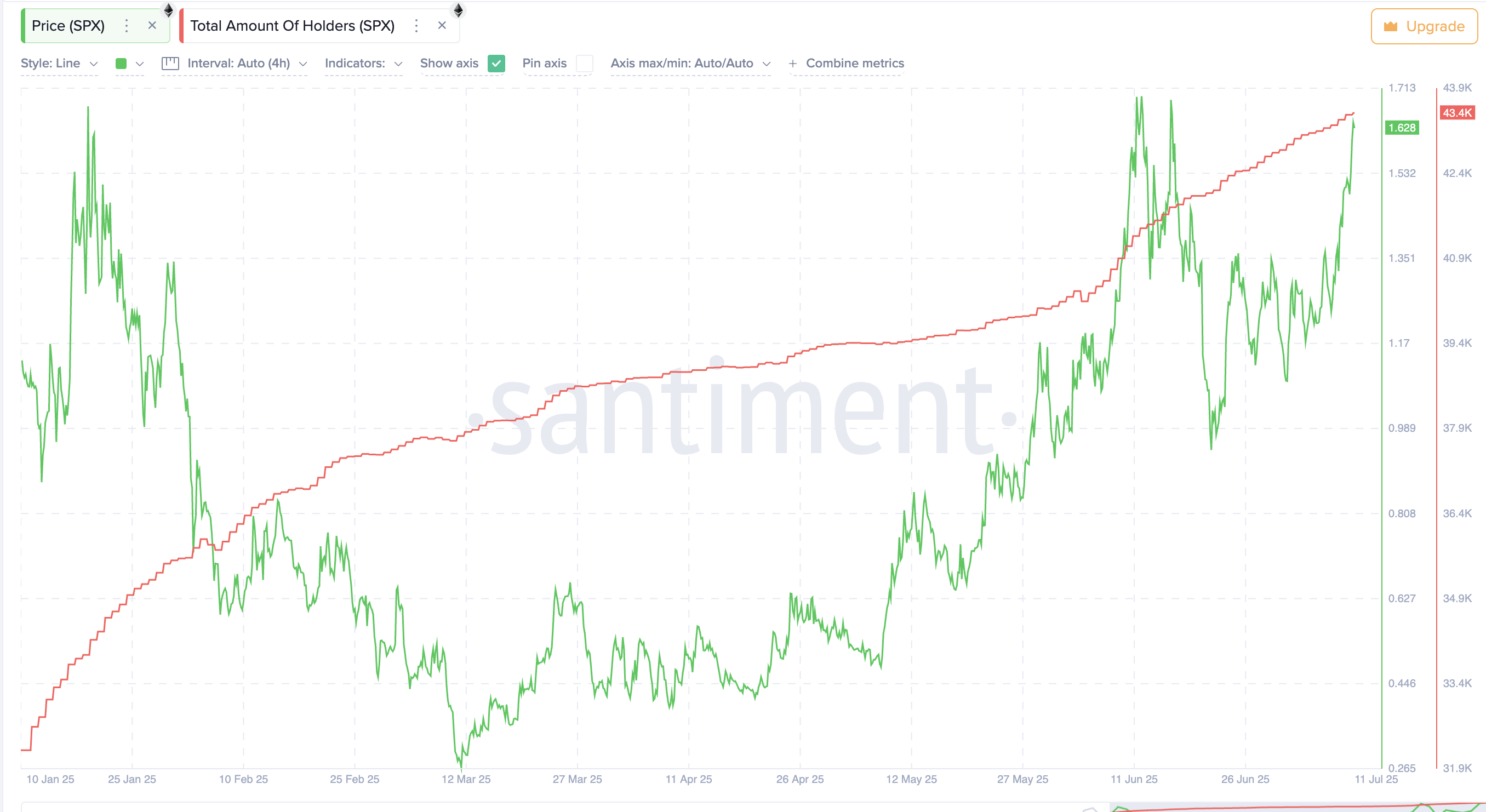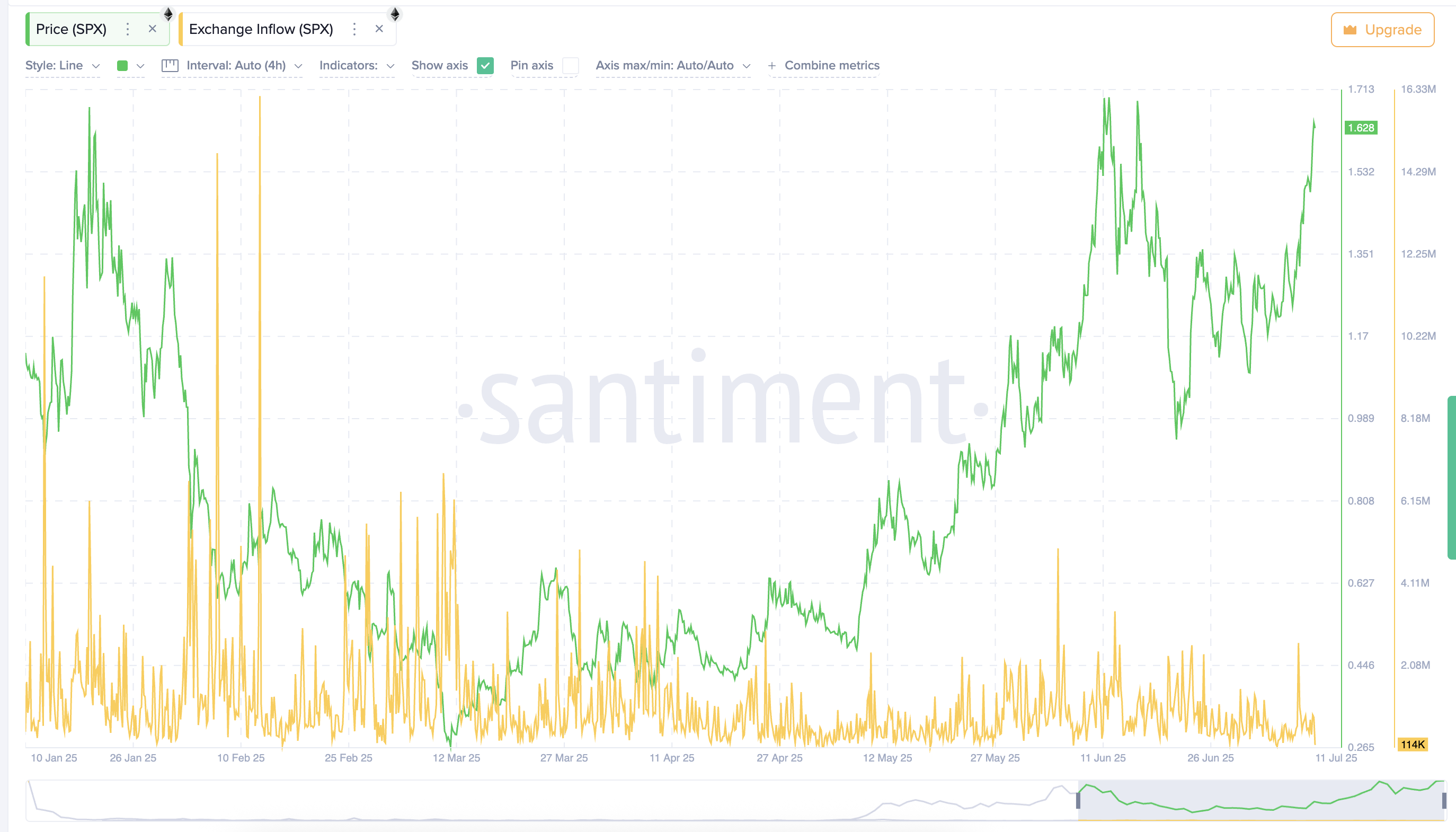 Bu kombinatsiya, ko’proq hamyonlar saqlanayotgani, kamroq tokenlar birjalarga yuborilayotgani, kapitalning o’rta muddatli niyat bilan aylanishini ko’rsatadi. SPXning grafigi PEPE, WIF va BONK kabi tokenlardan oldin harakatlanayotgani sababli, u endi butun sektor uchun hissiyot proksi sifatida qabul qilinmoqda.