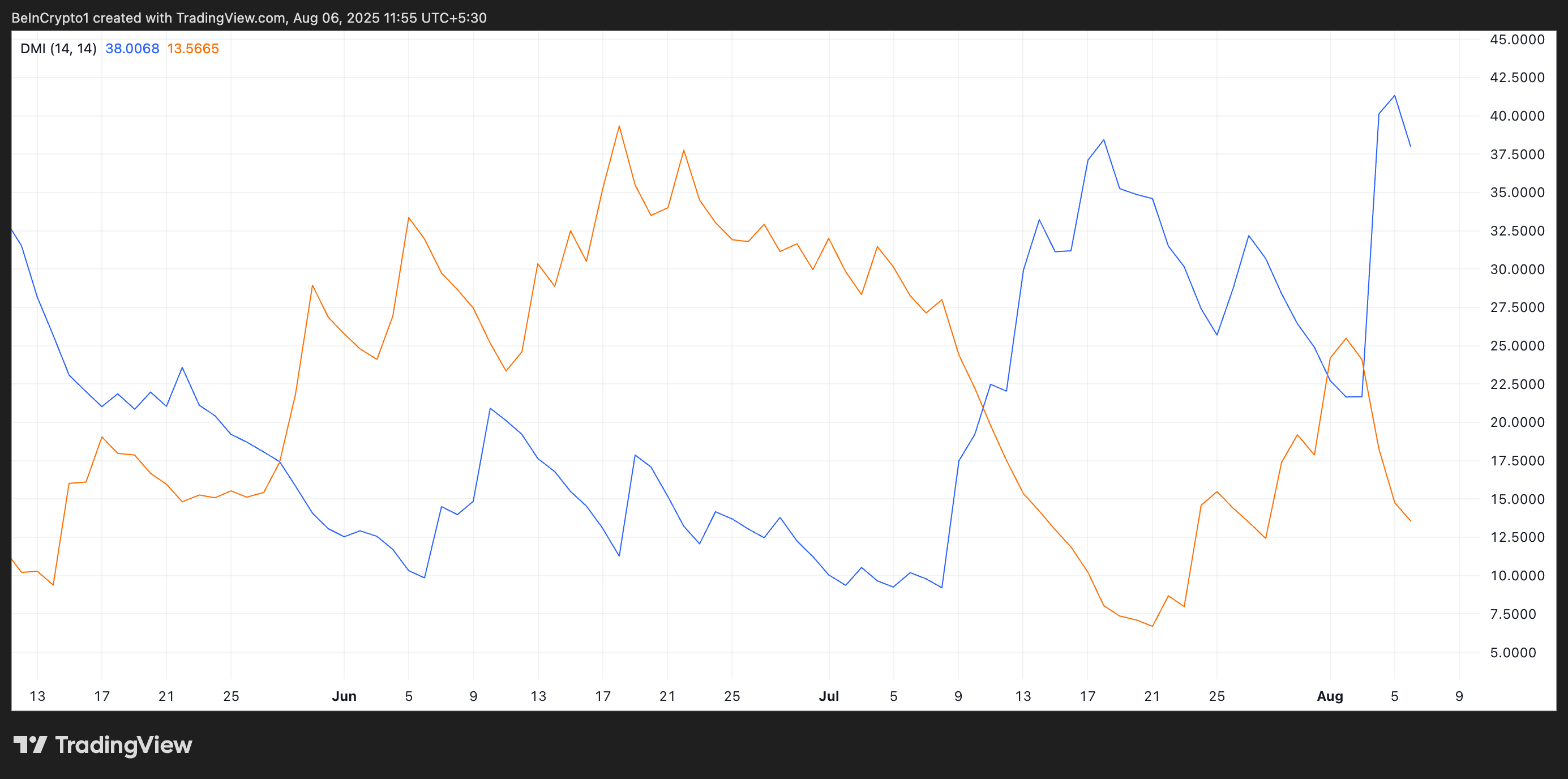 DMI indikatori trendning kuchi va yo’nalishini so’nggi yuqori va past nuqtalarni tahlil qilish orqali baholaydi.