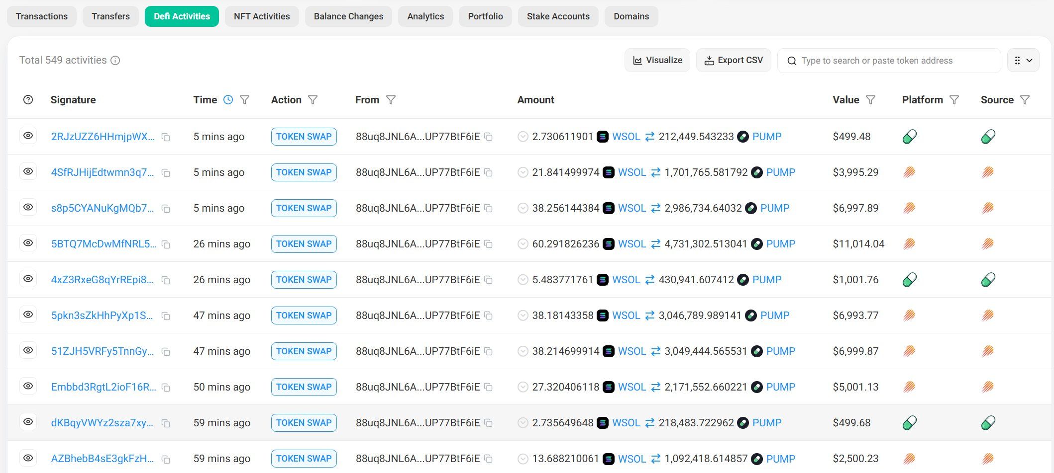 Blokcheyn ma’lumotlariga ko’ra, “Pump.fun” allaqachon 12,000 SOL ni belgilangan qayta sotib olish manziliga o’tkazgan.