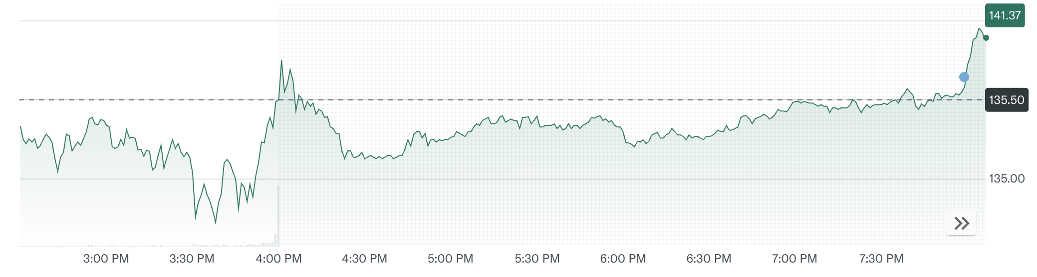 Hisobot «Nvidia» aksiyalarining narxiga ijobiy ta’sir ko’rsatdi. «Yahoo Finance» ma’lumotlariga ko’ra, aksiyalar 134,8 dollarda yopildi, bu 0,51% pasayishni anglatadi. Biroq, bozor yopilgandan keyin narx keskin ko’tarilib, 141,3 dollarga yetdi va 4,8% o’sdi.