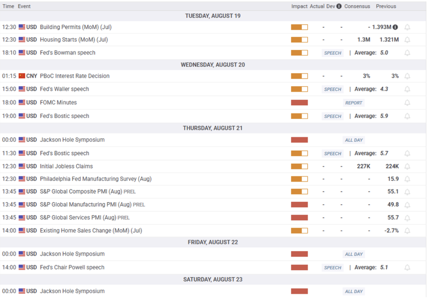 Juma kuni “Federal Rezerv” raisi Jerom Pauell “Jekson Xoul simpoziumi”da so’zlaydi. Pauellning izohlari AQSh davlat obligatsiyalari daromadlarida katta reaktsiyani keltirib chiqarishi va haftaning oxirida Oltinning o’zgaruvchanligini oshirishi mumkin.
