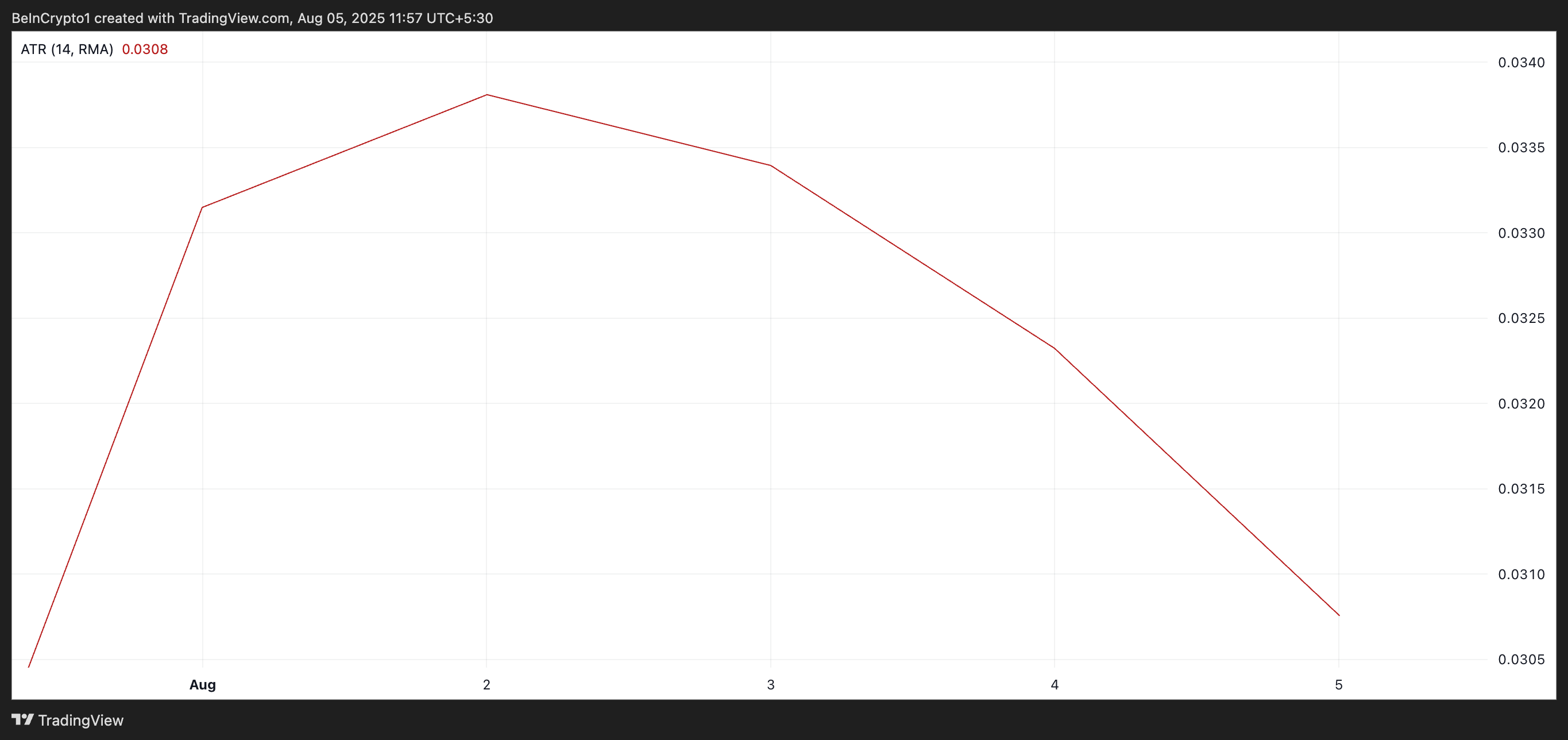 Bundan tashqari, PI tokenining O’rtacha Haqiqiy Diapazoni (ATR) 2-avgustdan beri pasaymoqda, bu bozorning noaniqligini tasdiqlaydi. Ushbu maqola yozilayotgan paytda, bu indikator 0.03 darajasida turibdi.