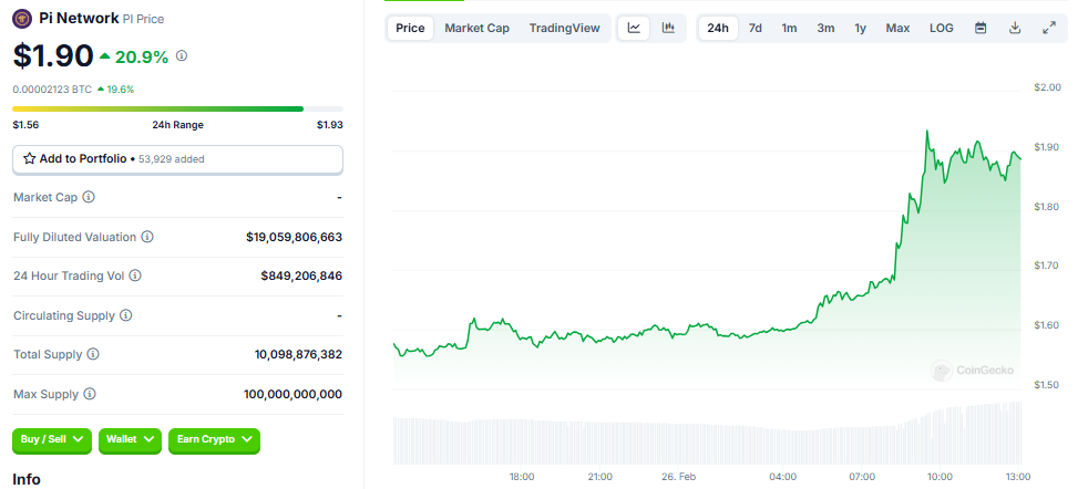 Pi Networkning global hamjamiyati uchun bu rivojlanishlar o’zlarining aktivlarini moddiy tovarlar uchun ishlatish imkoniyatlarini taqdim etadi. Ushbu e’lonlardan so’ng, Pi Coinning bozor narxi 20% dan oshdi. Ushbu yozuv paytida u $1.90 da savdo qilinmoqda.