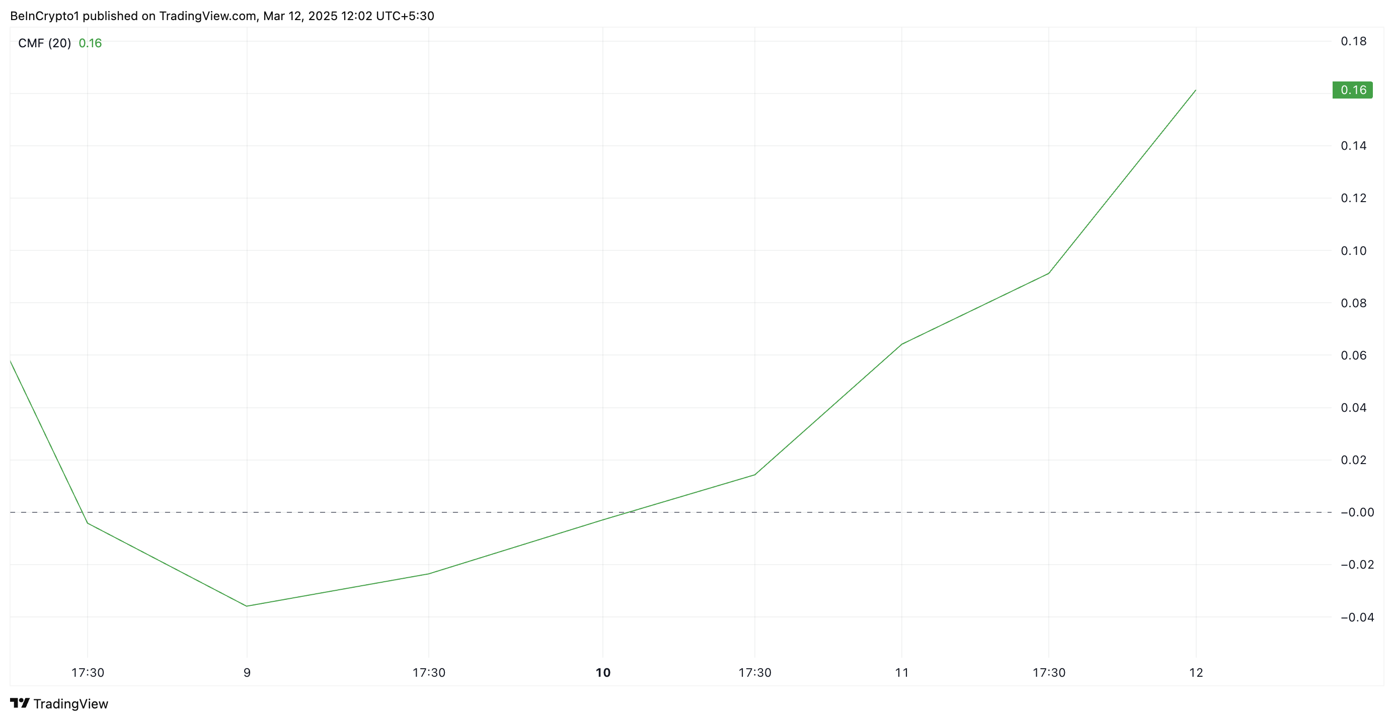Bundan tashqari, uning ijobiy Chaikin Money Flow (CMF) bu buqa nuqtai nazarini tasdiqlaydi. Ushbu indikator, PI ichiga va undan pul oqimini kuzatib boradi, nol dan yuqorida 0.16 da joylashgan.