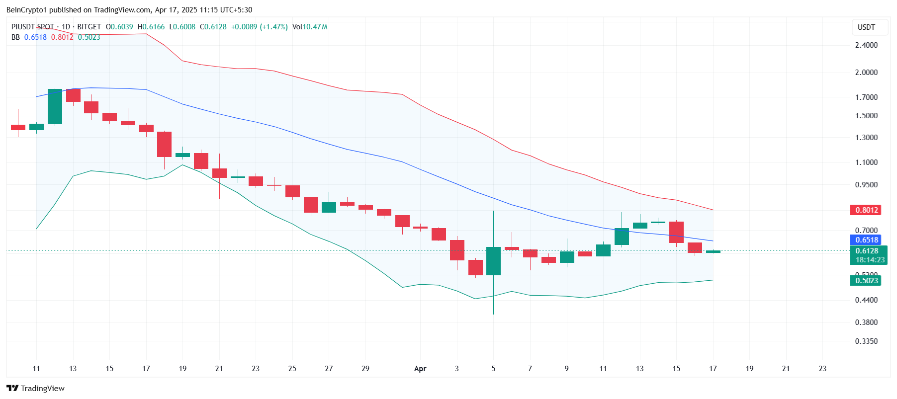 Pi Network narxi hozirda $0.613 da, lekin $0.617 qarshilik darajasidan pastda qolmoqda. So’nggi ikki kun ichida 18% pasayishdan so’ng, altkoin bosim ostida qolmoqda. Agar narx pasayish tendensiyasini davom ettirsa, muhim qarshilik darajalarini yengib o’tishda qiynalishi mumkin.