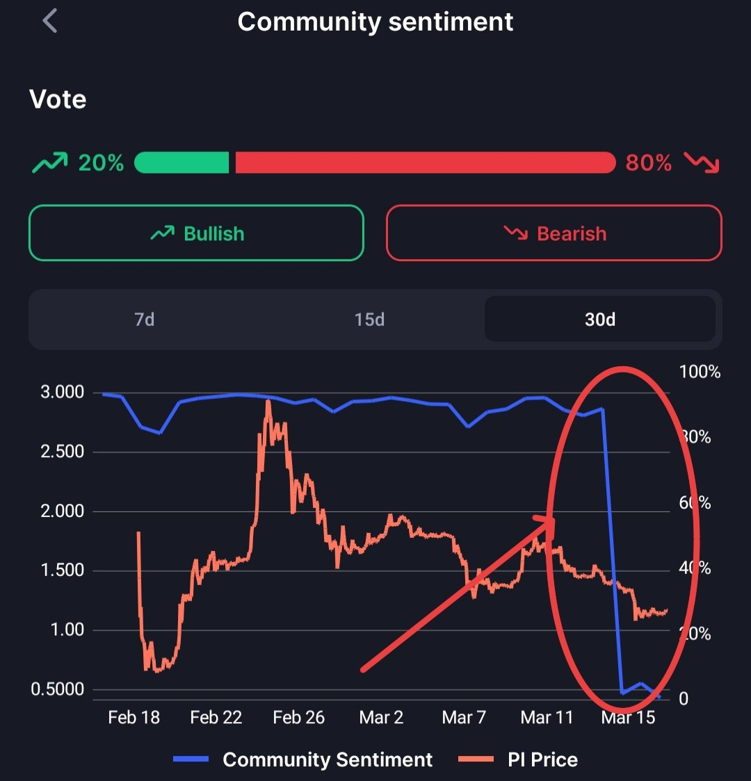 Ko’plab foydalanuvchilar KYC migratsiya muddati tugagandan so’ng katta miqdorda Pi tokenlarini yo’qotishdi va katta investorlar sotuvlari narxning tushishiga olib keldi. Bu salbiy kayfiyatning bir qismi haqiqiy bo’lishi mumkin.