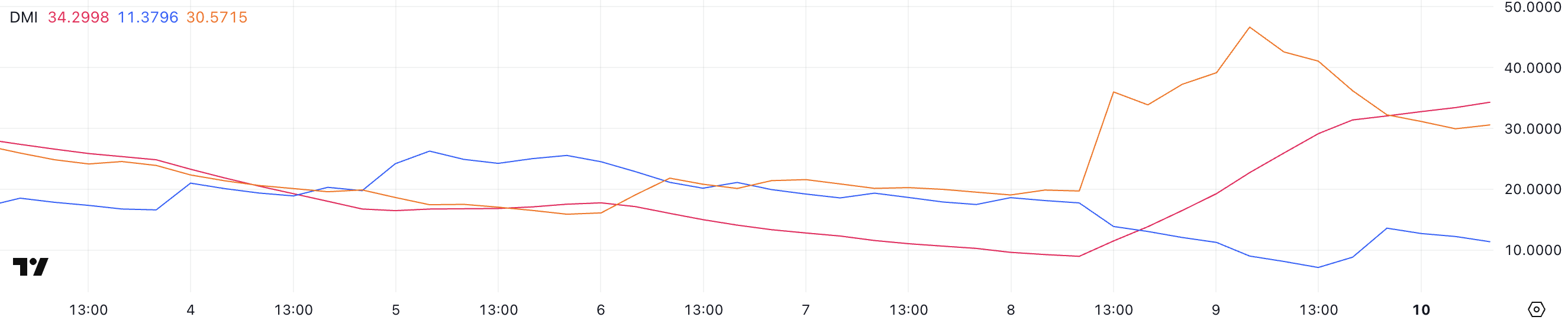 PI Yo’nalishli Harakat Indeksi (DMI) uning O’rtacha Yo’nalish Indeksi (ADX) 34.29 ga ko’tarilganini, ikki kun oldin esa atigi 8.97 bo’lganini ko’rsatmoqda.