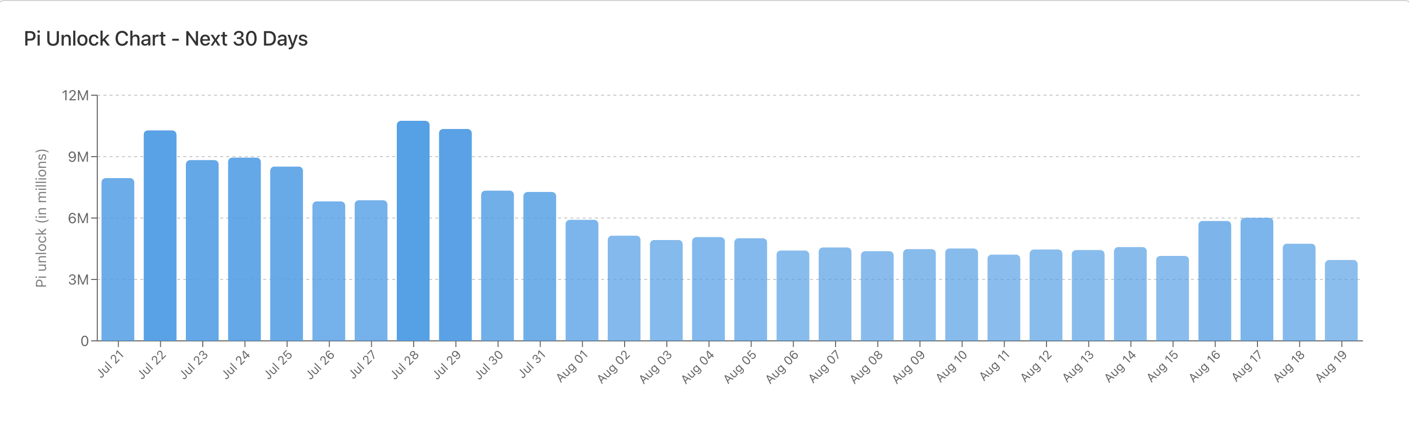 Bundan tashqari, «PiScan» platformasi (ma’lumotlar manbasi) ma’lumotlariga ko’ra, «Pi Network» ijtimoiy tarmog’i keyingi sakkiz kun ichida 95 million PI tokenini ochishni rejalashtirmoqda. Bu tokenning narxiga salbiy ta’sir ko’rsatishi mumkin.