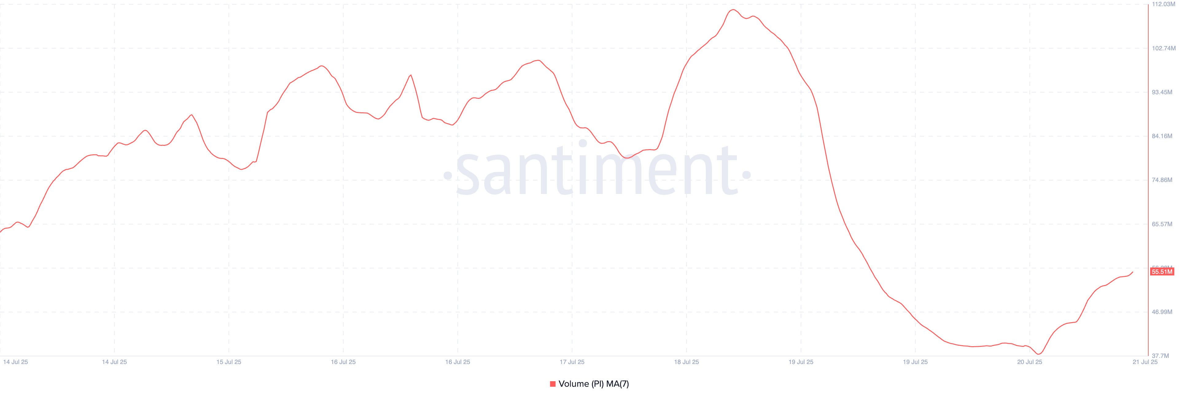 PI yon tomonga savdo qilayotgani va zanjir ichidagi faoliyat pasaygani sababli investorlar qiziqishi susaymoqda