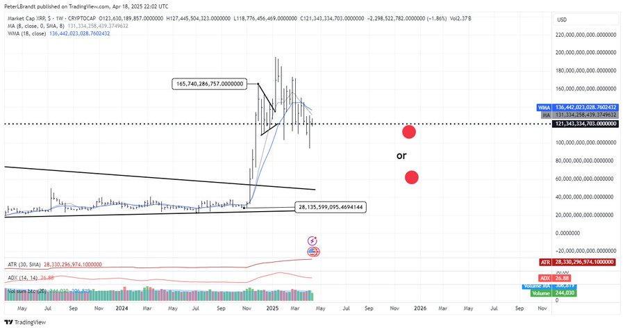 18-aprel kuni Brandt X (ilgari Twitter) orqali XRP bozor kapitalizatsiyasi uchun yil oxirigacha ikki xil ssenariyni taqdim etdi.