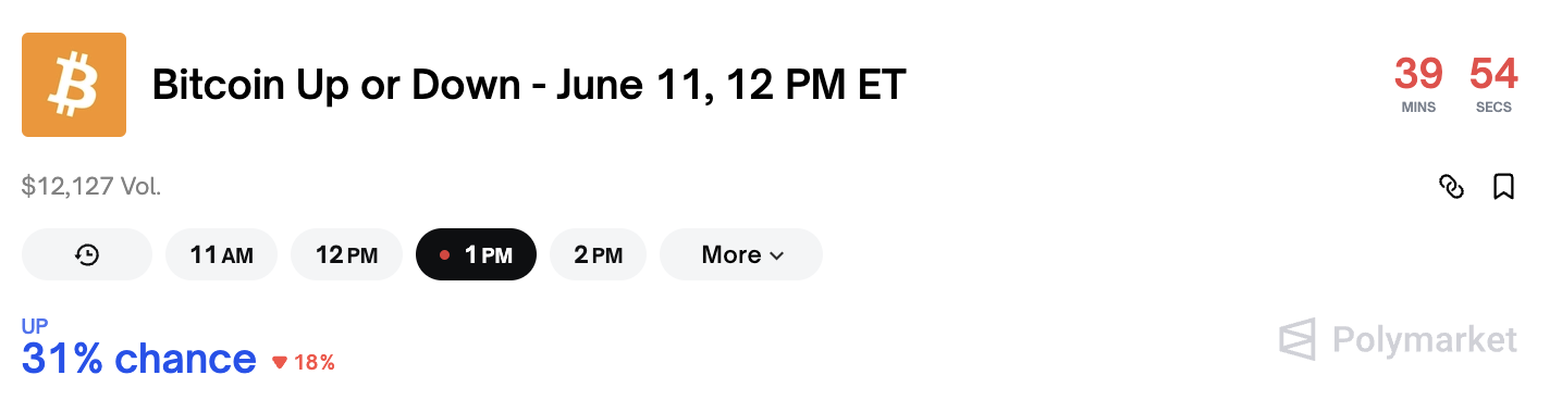 Polymarketning soatlik bitkoin garovlari